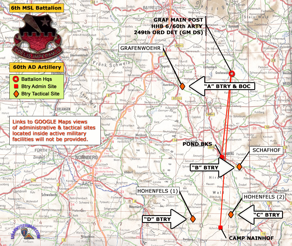 6th MSL Bn, 60th Arty admin and tactical sites in 1965