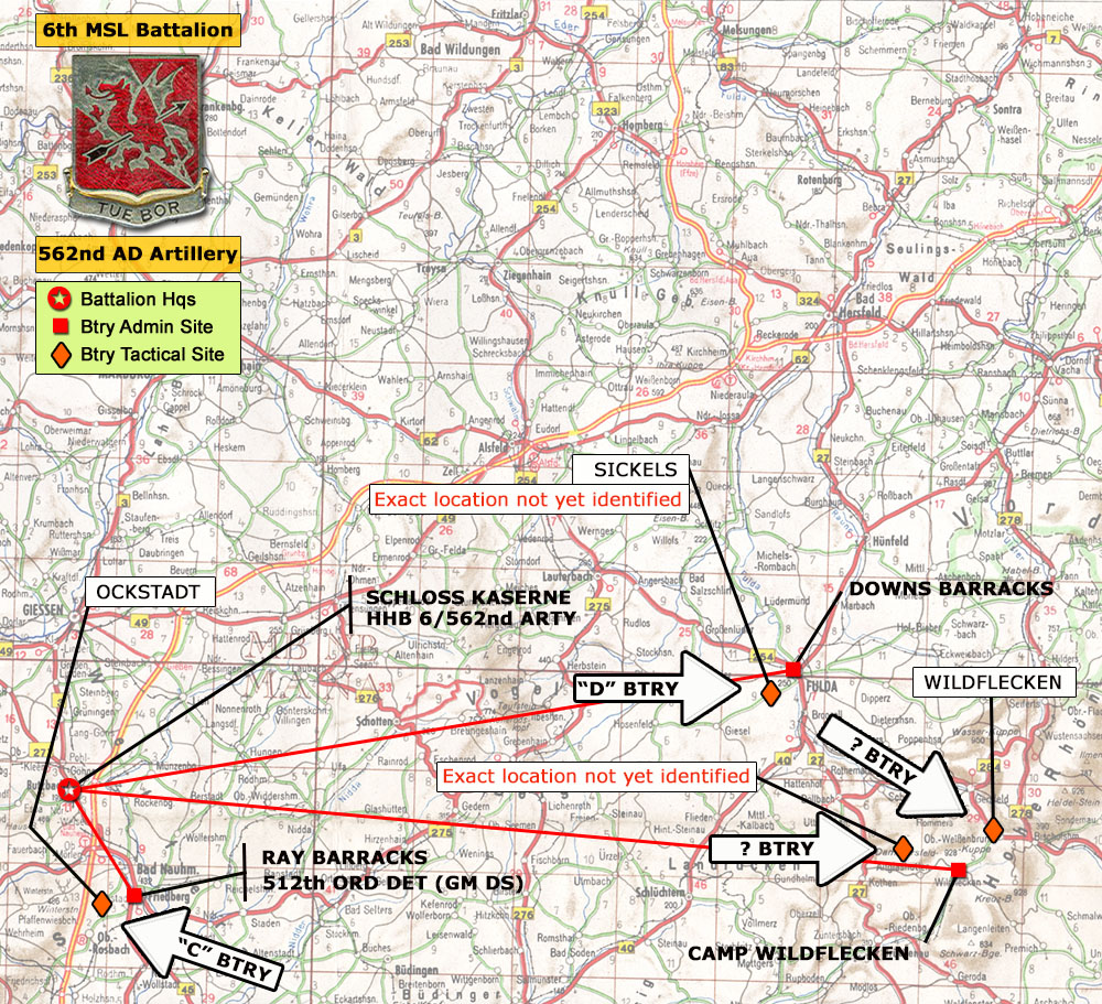 6th MSL Bn, 562nd Arty admin and tactical sites in 1965