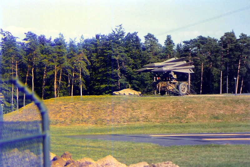One of the Hawk missile launchers on an elevated berm.