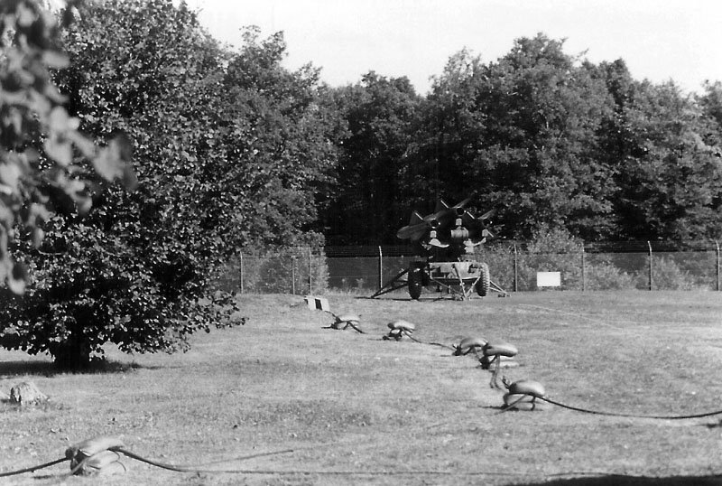 This view of a Hawk launcher shows the cables elevated with sandbags.