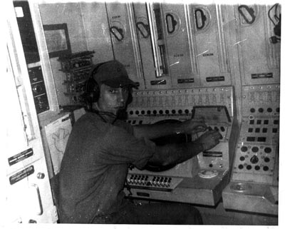 the 2 consoles in the Operations Central Van.