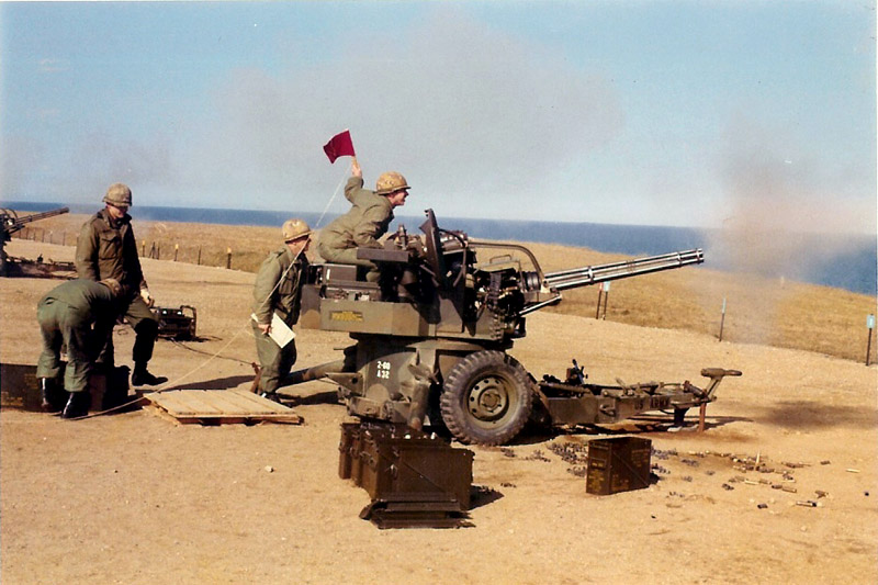 A towed Vulcan of "A" Battery fires at Todendorf during an Annual Service Practice, probably 1973.