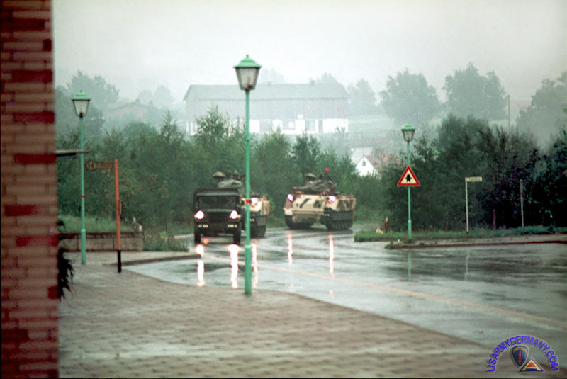 A "B" Battery convoy drives through the rain near Todendorf Range.