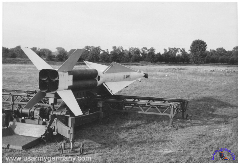 A view from the rear right quarter of Launcher 2 showing the portable blast deflector, and the right rear outrigger secured to the ground with four stakes. We leveled the launcher with a Gunner's Quadrant. The azimuth of the launcher was determined by using a M2 Aiming Circle.