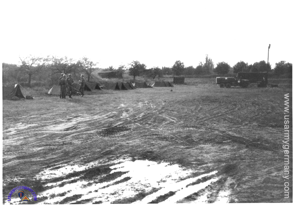 This is where we pitched our tents along the edge of a ditch. The Launcher Control Group (LCG) trailer can be seen at extreme right. The object sticking up in the air is the Test Responder, used by the MTR, during daily checks, drills, and launch operations. It was actually a Nike-Ajax guidance section with antennas in a specially modified weatherproof housing that was mounted and cranked by hand to the top of its mast... All Nike-Ajax and Nike-Hercules units had a Test Responder.