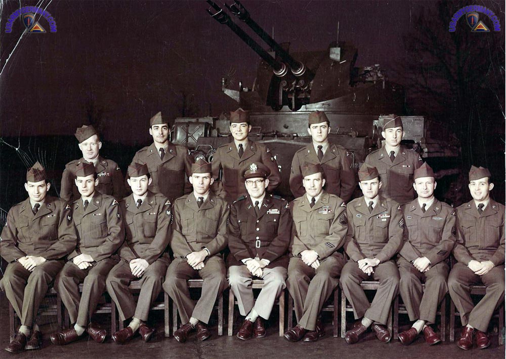 Group photo, Hq Battery, 69th AAA Group. The picture must have been taken either in late 1955 or early 1956, at that time our unit designation was "South AAA Group". The people in the photo are: