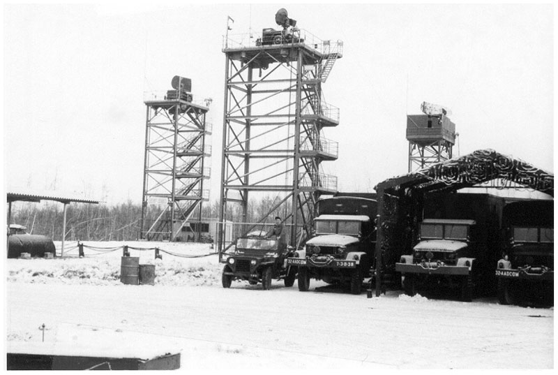 The Range-Only Radar (ROR) (center), Pulse Acquisition Radar (PAR) (right) and CW Acquisition Radar (left) have been mounted on towers to improve their range.