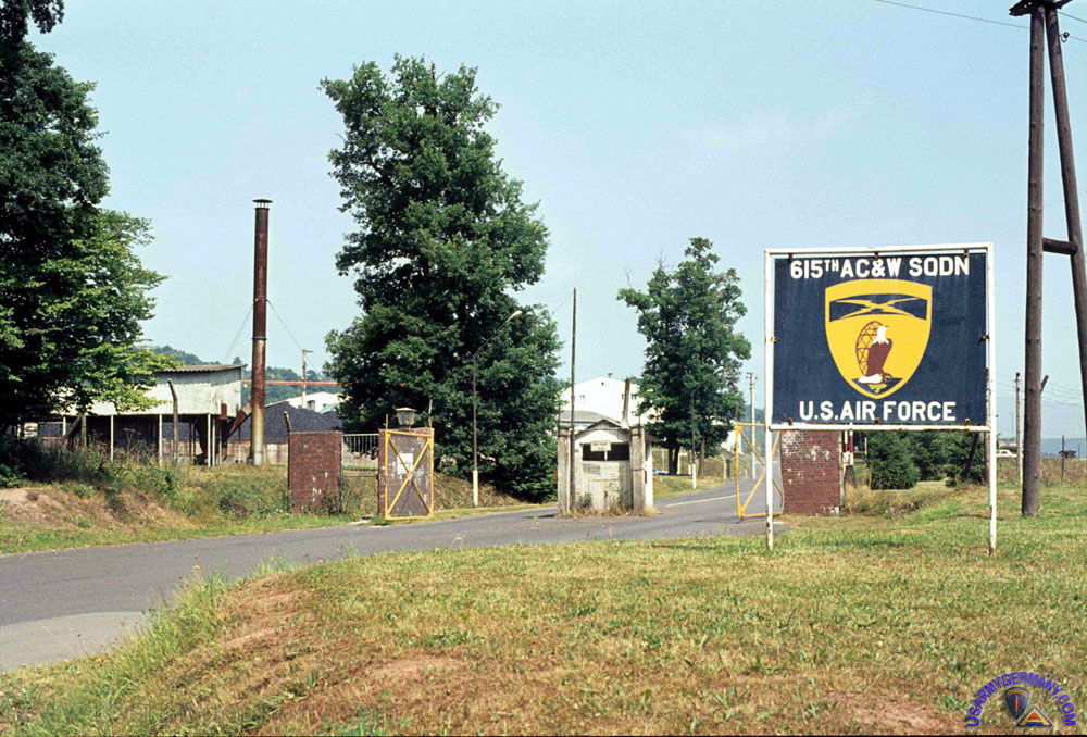 Neubruecke Hospital, Neubrücke - Rear gate. The Neubruecke barracks was another 1950s Army Hospital that unlike Landstuhl, was closed. Only the barracks and PX was open. Sign belongs to 615th Aircraft Control and Warning Squadron.