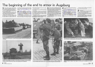 The United States Army is currently involved in the most extensive peacetime modernization program in its history. A large part of this modernization is taking place in unit reorganization and aquisition of new weapons and equipment. Part of the changes are already taking place in Aschaffenburg.