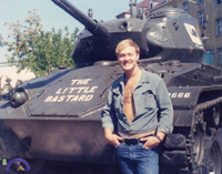 < My platoon sergeant, SFC FRANK COX, with his tank at the end of REFORGER 1977/78.