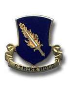 As a result of their continual rugged training and insurmountable pride in being paratroopers of the 8th Inf Div, the "Devils" of the 504th are today, as always, prepared to "Strike-Hold" which is the motto inscribed on the 504th's distinguished Blue Shield, below the flaming sword.