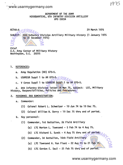 (Source: Special Organization Day 1960 Issue of the ARROW, 8th Inf Div newspaper, July 1, 1960),