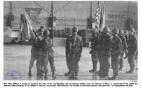 | The ceremony opened with the formation of the battalion by 1st Lt. Dennis M. Utz, Adjutant. The Commander of Troops, LTC Donald E. Nowland, 2/62 ADA, was joined by Col. Domenic P. Rocco Jr., Commander of the 108th ADA Brigade, and Col. William K. Winzurk, Commander of the 94th ADA Brigade, as they trooped the line.