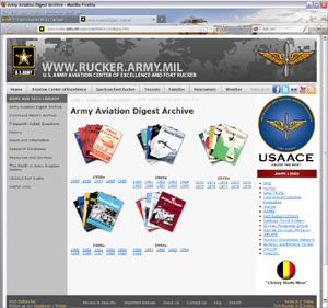 the U.S. Army Aviation Technical Library at Fort Rucker, Ala. made every issue of the ARMY AVATION DIGEST available online. The Digest, the first issue was published in Feb 1955, was an official DA periodical published monthly and provided information on all aspects of Army aviation. These issues are a valuable resource for anyone interested in the history and evolution of US Army aviation.  |  |