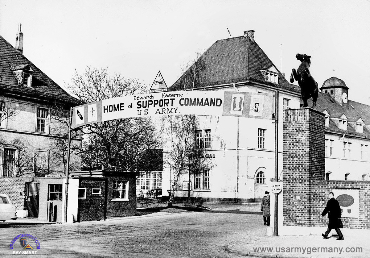 Main gate of Edwards Kaserne, 1963-64. Units stationed at Edwards were Hq Company and Band, 3rd Armd Div Support Command; 143rd Signal Bn & 503rd S&T Bn.
