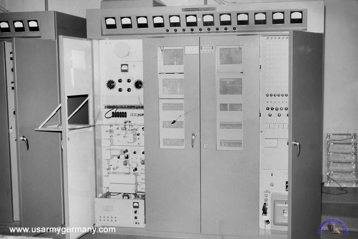 One of several Western Electric 4kw, 10 pre-tuned channel transmitter in the Air Force wing at the Det 1 site.