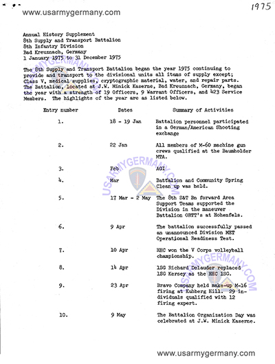 8th S&T Battalion Annual Historical Report, CY 1975 |