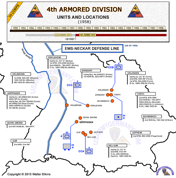 In December 1957, 4th Armored Division arrived in Germany from Ft. Hood, TX and established