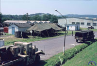 It's been a long time but I'll try to describe the layout of the Giebelstadt radar site. There was a large Quonset hut kind of a building that housed the U.S. Air Force "control center." I believe the building was on the south side of the runway which I think was about 10,000 feet but used only by a local German flying club. Our 69th Group MCC was in the back of the room on a kind of balcony. We had about 5 consoles that could display the radar data available (from what I seem to remember as 5 linked Air Force sites) and we maintained a manual status board reporting on the 5 Hawk missile battalions with 4 batteries each. We could talk over phone line to each of the battalions and batteries. In the basement was the 412L computer. Outside the main building were the radars (all under domes) and some smaller buildings. Our 69th Group MCC had a small administrative office in one of those buildings. At the east end of the runway were some Air Force facilities which I do not remember very well. I do remember getting haircuts there and there was a swimming pool.