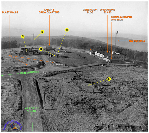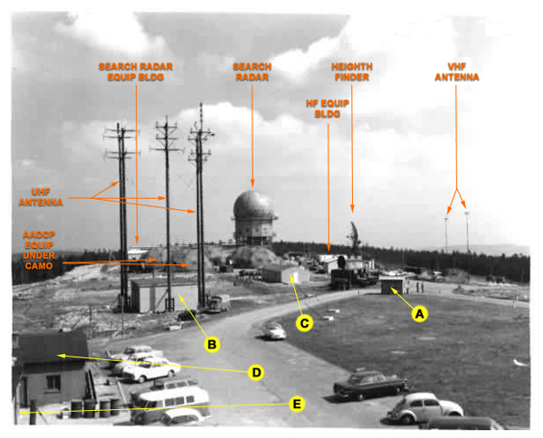 Hill 497 (see annotated photo above): the site was rather substantial and housed an AFCENT unit, a signal detachment, a German contingent, and our detachment. We had an S-2 and S-3 office in the same bldg as the signal and AFCENT unit. There were three radomes, RDPC van, seven 400KW diesel generators, the AADCP bldg, separate from operations, support bldgs for the radomes, around (6) 2 1/2 ton trucks, a 5 ton tractor, several jeeps, a staff van, a few 1/2 ton pickups w plows.