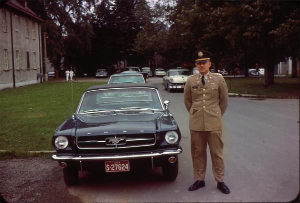 W. Kieffer, Commo Officer, and his new Mustang cobvertible.