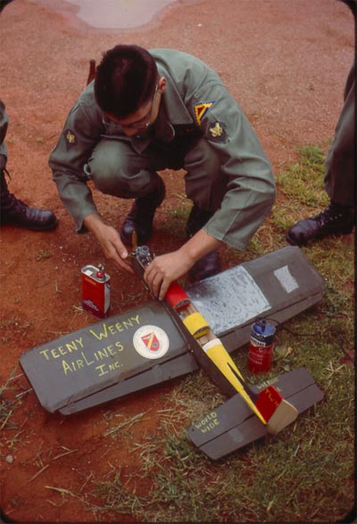 Goyich tries to start a model airplane. The model was built by a member of the Group and was meant to be flown until it ran out of fuel and then let crash as a symbol of the demise of the Group. Unfortunately, the plane wouldn't start.